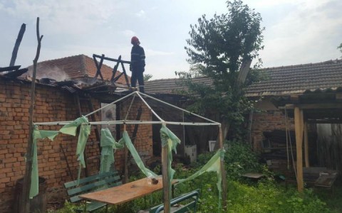 Acoperișul unei case din Baia de Fier, distrus de flăcări
