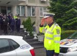 Un moment de reculegere a fost ținut, astăzi, la ora 12.00, în fața sediului IPJ Gorj, pentru polițistul împușcat mortal, ieri, de suspectul pe care îl urmărea, în localitatea timişeană Izvin. Autospecialele au staționat și au avut pornite semnalele acustice și luminoase, timp de un minut.