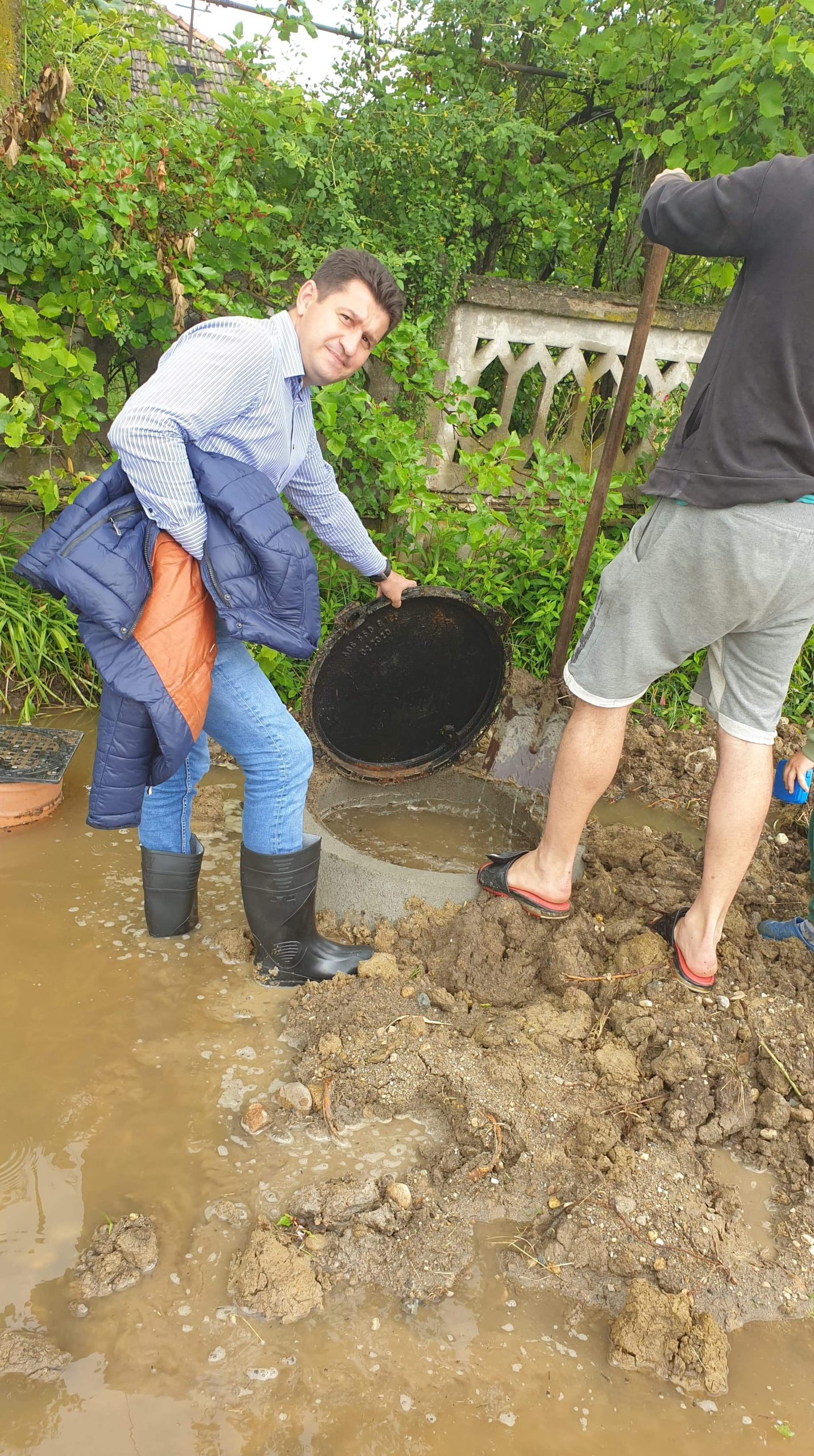 Din cauza ploilor abundente canalizarea a cedat, spune consilierul care a ascultat doleanțele cetățenilor, ieșiți cu lopețile să se lupte cu apele care le-au întrat în curți, în valuri.