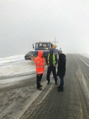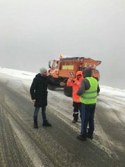 Sunt active 6 utilaje pe DN 67C și 5 utilaje pe DN 67D; se acționează cu lama și material antiderapant fiind împrăștiate peste 40 de tone până la această oră.