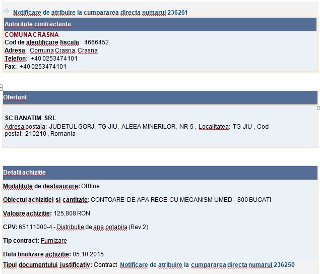 Cireașa de pe tort nu sunt însă cele două contracte încredințate BANATIM, ci un al treilea, parafat, pe 5 octombrie 2015, pentru suma de 125.808 de lei. Contractul consta în achiziționarea a 800 de contoare pentru apa rece cu mecanism umed, firma cu doar cinci salariați, reușind performanța de a deține, pe stoc, și aceste aparate.