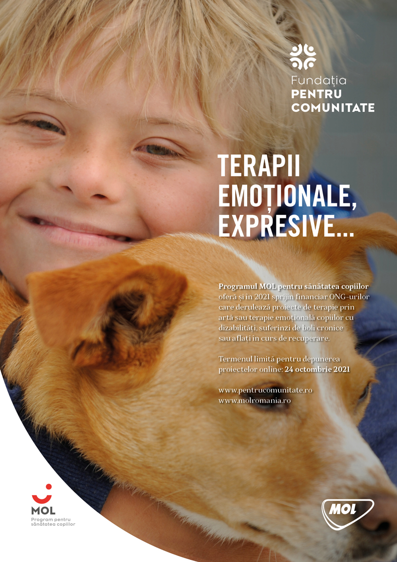 MOL România și Fundația Pentru Comunitate au dat startul înscrierilor pentru concursul de proiecte din cadrul celei de-a 13-a ediții a Programului MOL pentru sănătatea copiilor, destinat organizațiilor non-guvernamentale care derulează proiecte de terapie emoțională și intervenții psihosociale pentru copiii cu nevoi speciale sau cu boli cronice. Fondul alocat acestei ediții este de 400.000 de lei, iar finanțarea maximă care poate fi obținută de către un ONG este de 25.000 de lei. Înscrierea proiectelor se poate face exclusiv online până la data de 24 octombrie, inclusiv.