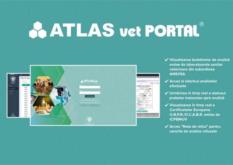 Accesul la platformă este complet gratuit, iar datele sunt protejate printr-un sistem de autentificare securizat. ATLAS vet PORTAL contribuie la transparență, rapiditate și accesibilitate, oferind un sprijin real pentru medicii veterinari, fermieri, procesatori sau orice operator din domeniul siguranței alimentare care are nevoie de rezultate clare, rapide și oficiale în activitatea sa.