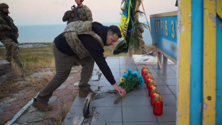 Președintele Ucrainei, Volodimir Zelenski, a mers astăz pe Insula Şerpilor, acolo de unde a trimis un mesaj, pentru a comemora 500 de zile de război.