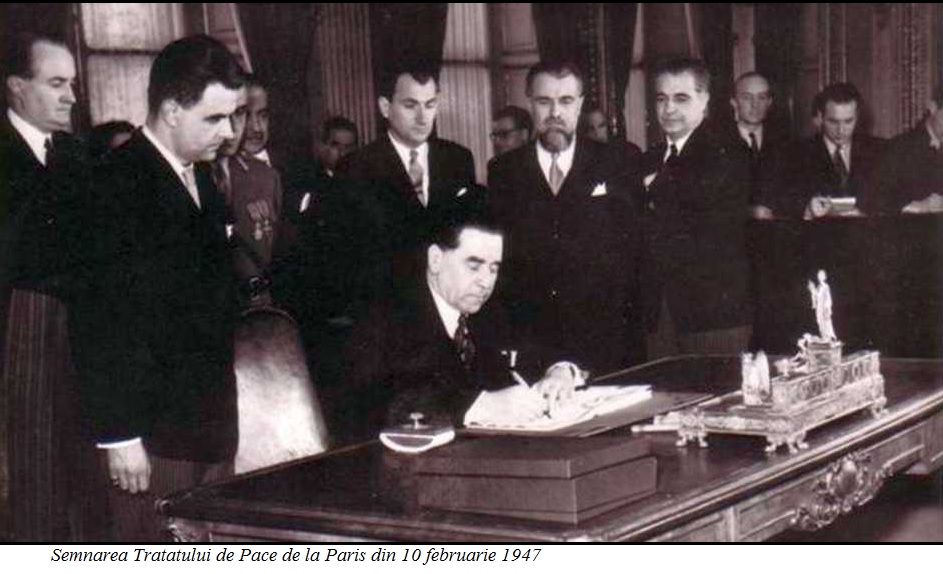Tratatul de pace s-a semnat la 10 februarie 1947, în Sala Orologiului de la Quai d’Orsay, în prezenţa delegaţiilor celor cinci state învinse: Italia, Finlanda, Bulgaria, România şi Ungaria. Din partea României semnatarii au fost Gheorghe Tătărescu, Lucreţiu Pătrăşcanu, Ştefan Voitec şi Dumitru Dămăceanu. Acest tratat încheia „capitolul dureros” al participării României la cel de-al doilea Război Mondial. La 23 august 1947, cu unanimitate de voturi, Adunarea Deputaţilor din Bucureşti a adoptat Legea nr. 304 pentru ratificarea Tratatului încheiat la Paris, care a intrat în vigoare din 15 septembrie 1947, odată cu depunerea instrumentelor de ratificare la Moscova.