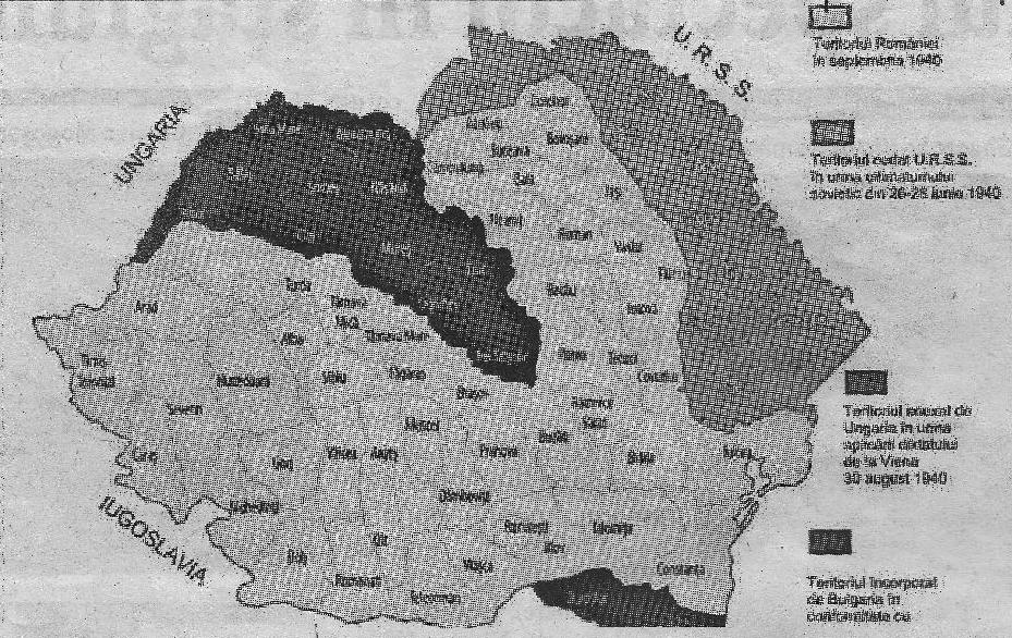În mult zbuciumata existență a poporului român, vara anului 1940 poate să fie socotită una dintre marile tragedii ale trecutului nostru istoric, exemplificând și nefasta afirmație prin faptul că în numai trei luni, prin Diktatele din 26 iunie-30 august- 7 septembrie 1940, de la Moscova și Viena, granițele României au fost pur și simplu mutilate. Mai exact, Basarabia, Bucovina de Nord și Ținutul Herta au fost rupte teritorial și integrate în granițele Rusiei sovietice, Transilvania de Nord-Vest a intrat în componența Ungariei horthyste, iar Dobrogea de Sud, adică Cadrilaterul a fost cedat Bulgariei. Și în felul acesta 33% din teritoriu și populație, sau mai concret din România Mare cu o suprafață de 295.095 km pătrați și peste 20 mil. de locuitori, au fost reduse, prin cele două dictate odioase, la 195.000 km pătrați și cu puțin peste 13 mil. locuitori.