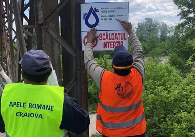 „Având în vedere creşterea temperaturilor şi odată cu aceasta tentaţia cetăţenilor de a se scălda, Administraţia Bazinală de Apă Jiu Craiova anunţă că este interzisă îmbăierea în apele curgătoare, acestea neîndeplinind condiţiile pentru a fi folosite în acest scop. Pentru a conştientiza populaţia de riscul pe care şi-l asumă dacă se scladă în apele Jiului – expunere la îmbolnăvire şi înnec – “A.B.A «Jiu» Craiova a amplasat pe malul râului Jiu plăcuţe cu «Scăldatul interzis». Subliniem faptul că râul Jiu nu-i loc amenajat pentru scăldat, chiar dacă zeci de oameni care nu respectă interdicţia vin zilnic să înoate aici. Este cunoscut faptul că scăldatul în locuri neamenajate corespunzător determină și riscuri majore pentru sănătate pe lângă pericolul de înec”, au transmis reprezentanții ABA Jiu.