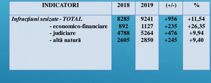 La prezentarea bilanţului activităţii Inspectoratului de Poliție Județean Gorj, reprezentanții instituției au anunțat, joi, că în 2019 a crescut numărul infracţiunilor cu 11, 54 %, față de aceeași perioadă a anului 2018.,,În 2019 au fost sesizate 9.241 infracţiuni faţă de 8.285 în 2018, fiind înregistrată o creștere procentuală de 11,54%. În mediul urban au fost sesizate 4.834 infracţiuni, 52,31% din total. În mediul rural au fost sesizate 4.400 infracţiuni (47,61 % din total). Șapte infracţiuni au fost sesizate ca fiind comise în străinătate (0,08%)”, potrivit unui comunicat al IPJ Gorj. Reprezentanții instituției au oferit și câteva cazuri pe care polițiștii le-au soluționat rapid, în 2019. ,,Identificarea de către polițiștii Serviciului de Investigații Criminale a autorului infracțiunii de tâlhărie, comisă la data de 25 februarie 2019, la casa de schimb valutar de pe raza orașului Bumbești-Jiu, dată la care, un bărbat de 41 ani din municipiul Petroşani, județul Hunedoara, având fața mascată și prin folosirea unui pistol, a sustras suma de 46.850 în lei și valută. În baza probatoriului, instanța de judecată a dispus arestarea preventivă a autorului, acesta fiind ulterior condamnat la o pedeapsă privativă de libertate de 3 ani şi 6 luni închisoare. La data de 04 aprilie 2019, poliţiştii au identificat şi documentat activitatea infracţională a cinci bărbaţi, toți din județul Vâlcea, cu antecedente penale, care, în noaptea de 17/18 martie 2019 au săvârşit infracţiunea de furt calificat din Agenţia CEC Târgu-Logreşti, când, prin tăierea firelor de alimentare a sistemului de alarmare şi spargerea unui perete exterior, au pătruns în interior şi au forţat seiful de valori, fără a-l deschide, fiind cauzat un prejudiciu de 2800 de lei. În baza probatoriului administrat, cei cinci inculpaţi au fost trimişi în judecată pentru comiterea infracțiunii de furt calificat și distrugere”, au mai precizat reprezentanții IPJ Gorj. Tot în 2019 a fost prins autorul infracțiunii de furt calificat, faptă comisă la data de 19/20 octombrie 2019, la un bancomat din Polovragi. Un bărbat de 33 ani, din orașul Novaci, este acuzat că, prin explozie, a distrus sistemul de închidere al bancomatului și a sustras suma de 177 000 de lei. Instanța a dispus față de acesta măsura arestării preventive.,,Pe linia infracţiunilor contra patrimoniului, structurile de investigaţii criminale au destructurat, în anul 2019, 13 grupări infracționale prin trimiterea în judecată a 50 de membri, dintre care exemplificăm o grupare specializată în comiterea de furturi din locuinţe, cu moduri de operare deosebite și o grupare specializată în furturi din unități bancare și din locuințe, ambele acționând pe raza mai multor județe. Referitor la criminalitatea gravă comisă cu violenţă, aceasta reprezintă un procent de 0,65% din totalul infracţiunilor judiciare sesizate.Procentul de soluţionare al dosarelor penale ce au privit infracţiuni de omor şi tentativă de omor a fost de 100%, autorii fiind identificaţi şi dispuse măsuri ferme”, a declarat Miruna Prejbeanu, purtătorul de cuvânt al IPJ Gorj.
