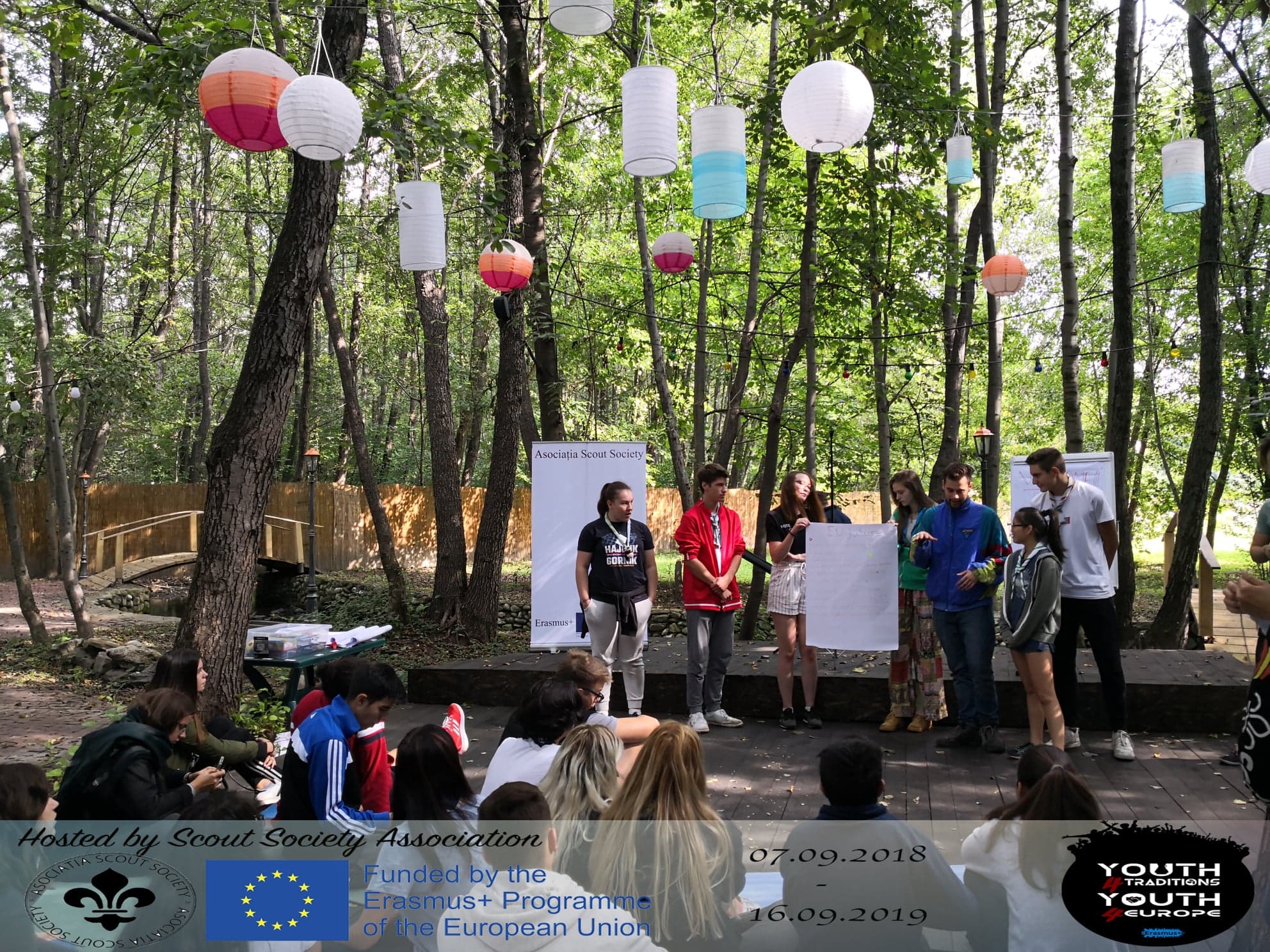 Activitatea principalӑ a proiectului “Youth4traditions, Youth4Europe”, schimbul de tineri, implementat de Asociaƫia Scout Society împreunӑ cu parteneri din Spania (GRUPO SCOUT ERYTEEIA ṣi Croaƫia (Odred izvidjaca pomoraca Posejdon) a început. Scopul proiectului este de a promova o Europă unită, multiculturalitatea, toleranța prin meșteșuguri și diminuarea comportamentelor deviante, precum este bullying-ul în rândul tinerilor. În cadrul schimbului de tineri, cei 57 de participanți vor lua parte la ateliere de lucru care vor viza trecutul și viitorul Uniunii Europene, multiculturalismul, toleranță vs bullying, dar și ateliere de olărit și meṣteṣuguri specifice zonei Olteniei.