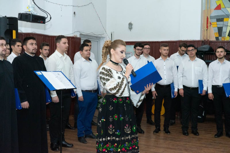 Cu binecuvântarea Înaltpreasfințitului Părinte Irineu, Arhiepiscopul Craiovei și Mitropolitul Olteniei, în ziua de joi, 16 decembrie, a avut loc ediția a IX-a a Festivalului de Crăciun „Tradiții și obiceiuri din bătrâni”, organizat de Liceul Teologic „Sfântul Nicodim” din Târgu-Jiu. Evenimentul a avut loc în amfiteatrul Colegiului Economic „Virgil Madgearu” din Târgu-Jiu, prin bunăvoința domnului profesor Marius Badea Dumitru, Directorul Colegiului, și s-a bucurat de prezența reprezentanților Inspectoratului Școlar Județean (ISJ) Gorj, ai Prefecturii Gorj, ai Primăriei și Consiliului Local Târgu-Jiu, precum și a numeroși părinți, bunici sau apropiați ai elevilor. Festivalul a început la ora 18.00 și a fost deschis de cuvântul Pr. Prof. Ștefan Cristi Vătafu, Directorul Liceului Teologic, care a vorbit despre însemnătatea sărbătorii Nașterii Domnului. Cuvântul de binecuvântare al Înaltpreasfințitului Părinte Mitropolit Irineu a fost transmis de Pr. Prof. Neofit Stănciulescu, Inspector de Religie în cadrul ISJ Gorj. Programul a fost deschis de elevele Cristina Moga și Camelia Rezmiveș, care au interpretat colinda populară: „Am plecat cu colindatul”. A urmat Corul Liceului Teologic cu o suită de colinde bizantine: „Sus în vârful muntelui”, „Colind bizantin” sau „Trei crai de la răsărit”. După momentele lirice în care au fost evocate evenimentele Nașterii Domnului, elevul Sarcină Nicolae Grigore a interpretat colinda „Dumnezeu Preasfântul”, urmat de un moment de virtuozitate la vioară susținut de elevul Robert Șchiopu. Trupa de Teatru „Nicologos” a liceului a pus în scenă piesa „Vis de Crăciun”. A urmat un buchet de colinde populare: „Sus la ‘naltul cerului” – soliști Pr. Alexandru Găvan și Doctorand Mihail Popete, „Mândru-i cerul” sau „Asta-i casa cea frumoasă”. Colinda populară agrară declamată „Plugușorul” a fost pregătită și prezentată de elevii Profilului „Muzică bisericească”. În încheiere, Corul Liceului a interpretat colindele: „În staul de dobitoace” și „Florile dalbe”. Evenimentul a fost marcat de împlinirea în această lună a 10 ani de existență a Corului Liceului Teologic, prilej cu care au fost invitați să își dea concursul foști membri ai corului, în prezent preoți, profesori, doctoranzi sau teologi. În finalul evenimentului, Arhid. Prof. Dr. Nicușor Daniel Lăzărică, inițiatorul și coordonatorul Festivalului, a adus mulțumiri tuturor celor implicați.