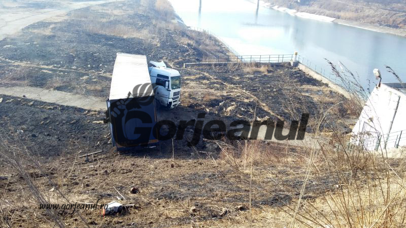 Un accident rutier mai puțin obișnuit a avut loc, sâmbătă dimineața, pe șoseaua de centură a municipiului Târgu-Jiu, unde un tir a zburat prin aer zeci de metri și a aterizat, pe roți, chiar la câțiva pași de albia Jiului. Evenimentul a avut loc la barajul din zona Vădeni, pe șoseaua care vine dinspre zona de nord a orașului șoferul mergând cu viteză. În curba la dreapta, pentru a traversa barajul, conducătorul auto, un tânăr din Dâmbovița, a pierdut controlul volanului și a mers drept înainte. Tirul a rupt o țeavă metalică de protecție de pe marginea șoselei și a coborât o pantă extrem de abruptă de circa 20 de metri, aterizând la baza acesteia. În mod surprinzător, bărbatul de la volan nu a fost rănit, el neputând însă să spună cum de s-a întâmplat să piardă controlul mașinii. Nu consumase băuturi alcoolice înainte de a se urca la volan, dar s-a ales cu o amendă de circa 850 de lei și trei puncte amendă.