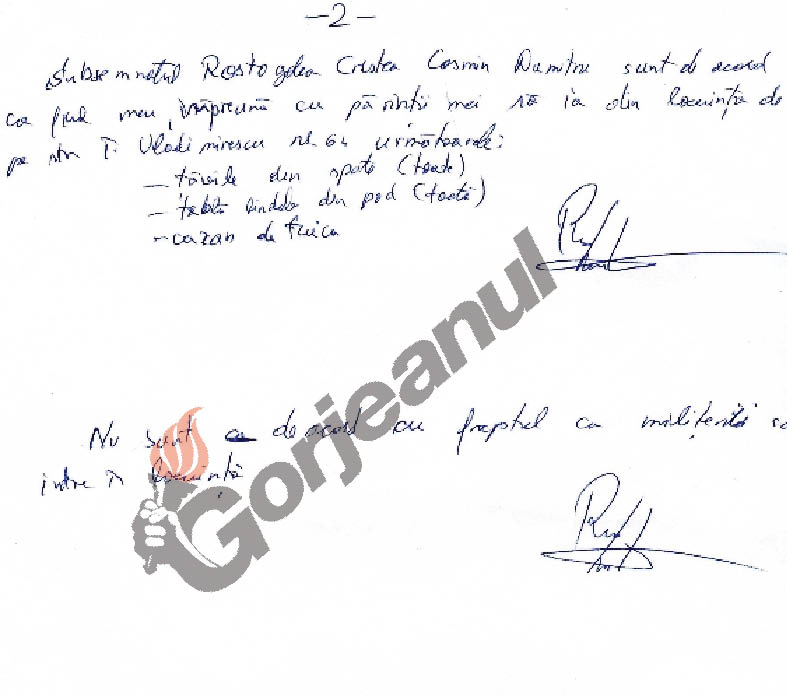 Poate din acest motiv, în luna august a acestui an, Cosmin Rostogolea a abandonat, brusc, lupta începută cu ani în urmă, transmiţând chiar instanţelor şi chiar actualului şef al IPJ Gorj că nu mai poate lupta şi suporta nedreptăţile, abandonând anchetele începute. Asta după ce cu câteva luni în urmă îl reclamase însuşi pe comandantul Gheorghe Parepa, pe care îl acuza astfel de abuz în serviciu, uz de fals, favorizarea infractorului şi chiar de instigare la crimă prin tortură psihică. “A anunţat asta, în scris, chiar şi la IPJ Gorj. A spus, în maniera proprie, că vrea să renunţe la viaţă, că vrea să renunţe chiar şi la propriul copil pe care vroia să ni-l dea nouă spre creştere şi educare şi chiar transmitea astfel că donează toate bunurile sale şi nişte sume de bani, fiului în vârstă de 8 ani”, mai spune Gheorghe Rostogolea.