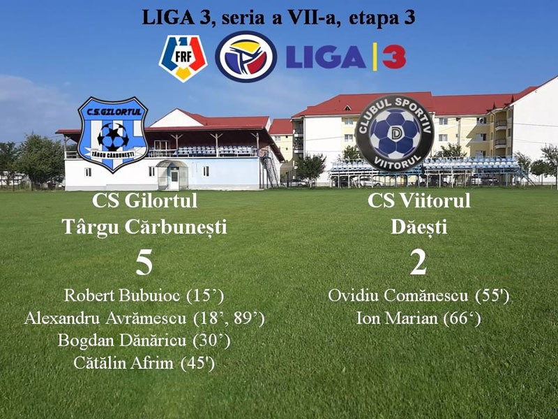 Gilortul Târgu Cărbunești și-a luat revanșa după eșecul drastic de la Copșa Mică. Trupa lui Florin Popete fusese depășită cu 6-0 de satelitul formației de primă ligă Gaz Metan Mediaş, un rezultat puțin anticipat de oficialii echipei gorjene după două victorii consecutive. Din fericire, echipa din Târgu Cărbunești a bifat un nou succes, sâmbătă, pe teren propriu. Gazdele au trecut cu 5-2 de Viitorul Dăești. Robert Bubuioc (15), Alexandru Avrămescu (18-penalty, 89-penalty), Bogdan Dănăricu (30) și Cătălin Afrim (45) au punctat pentru amfitrioni, în timp ce Ovidiu Comănescu (55) și Ion Marian (66) au redus din diferență pentru vizitatori. Antrenorul gorjenilor, Florin Popete, crede că prestaţia din meciul cu Mediaş a fost un accident şi este mulţumit că echipa şi-a revenit rapid. Gilortul are trei victorii din patru meciuri jucate.,,După meciul mai puțin reușit de la Mediaș, am stat de vorbă cu băieții și le-am spus că pun prestația lor pe seama unui accident. Le-am spus că trebuie să uităm foarte repede acel meci pentru că în fotbal pierzi, dar imediat vine weekend-ul și poți să câștigi. Cred că au depășit acel moment critic, echipa și-a revenit și am învins cu 5-2. La fiecare meci, mergem să câștigăm. Așa a fost să fie până acum, să bifăm trei victorii din patru meciuri. Stăm destul de bine în clasament și mă bucur pentru băieți, pentru că victoriile aduc victorii. Sunt victorii care pot să le dea încredere pe mai departe, știind că vin două meciuri foarte grele, cu două echipe bune ale seriei”, a declarat Popete.