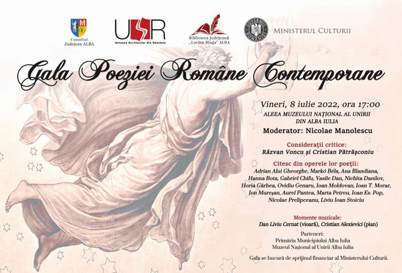 Continuu a crede că este o onoare a fi invitat să participi, fie și din postura de simplu auditor, una care deocamdată e de o oportunitate necesară (mie, mai întâi – n.m., I.P.B.), la „Gala Poeziei Române Contemporane”, ediția probabil a XII-a, al cărei moderator e Nicolae Manolescu. Urmând a se desfășura la Alba-Iulia, în organizarea Uniunii Scriitorilor din România și a Ministerului Culturii, deci inclusiv a Filialei Alba-Hunedoara a U.S.R., cum mi-s membru în componența ei din 2020, invitat fiind de președintele Cornel Nistea și de poetul Mircea Stâncel, am acceptat a fi de față în zilele de 8 și 9 iulie 2022.