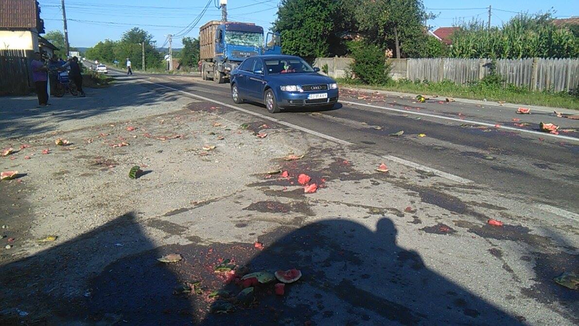 Evenimentul rutier a avut loc în urmă cu puțin timp, pe Drumul Național 67, în comuna Câlnic. Un microbuz de marfă, încărcat cu pepeni, a fost acroșat de un tir. În urma impactului, microbuzul a ricoșat într-un autoturism Dacia Logan, care era parcat în fața unei gospodării. Primele verificări arată că vinovat este conducătorul autoutilitarei, care nu ar fi acordat prioritate autocamionului. Trei persoane din microbuz și un pasager din autocamion au suferit leziuni. Medicii spun că se află în afara oricărui pericol. Cele patru persoane au fost transportate la spital. Șoferul microbuzului are 25 de ani și este din Castranova, din Dolj, iar cel al tirului are 37 de ani și este din municipiul Târgu-Jiu. Printre victime se află și doi adolescenți în vârstă de 16, respectiv 17 ani.