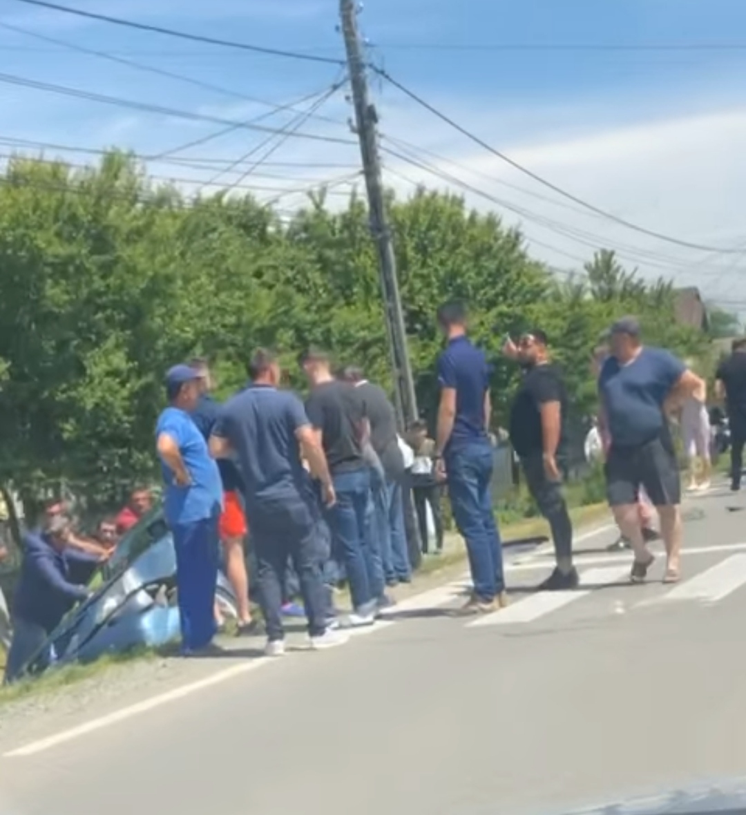 Unul dintre autoturisme a ajuns în șanț, lovind semnul de trecere de pietoni și doborandu-l la pământ. Un camion este implicat, fiind lovit în partea din față.