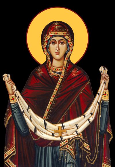 În tradiția greacă minunea arătării Maicii Domnului în Biserica din Vlaherne a fost sărbătorită mai mult de către călugării din Sfântul Munte Athos. Cu timpul, a căpătat forma unei sărbători, devenind foarte cinstită în lumea slavă, cele mai vechi izvoare ale Acoperamântului Maicii Domnului datând din secolul al XII-lea. În picturile unor mânăstiri din țara noastră, precum Sucevița, Horezu, Polovragi și Govora găsim reprezentat Acoperământul Maicii Domnului; la fel în pronaosul Bisericii ,,Sfântul Ierarh Nicolae și Sfântul apostol Andrei” din municipiul Târgu-Jiu, chiar și în zilele noastre.