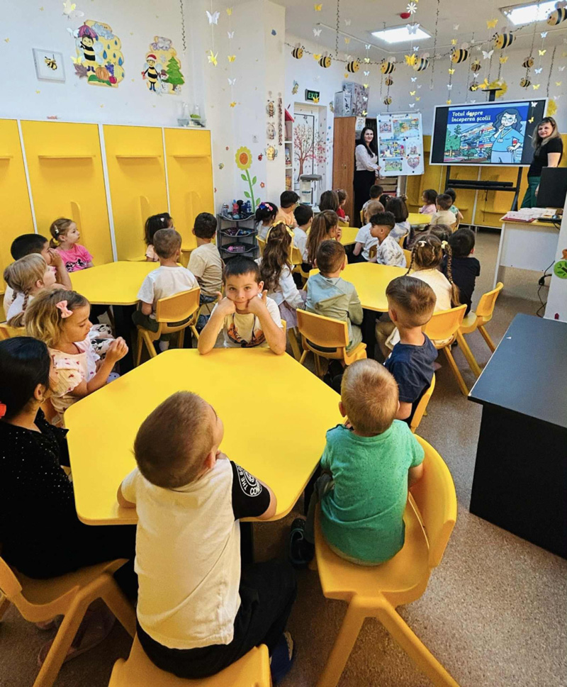 Preșcolarii au fost curioși să vadă sala de clasă, dar și modul în care se desfășoară activitățile elevilor. Acțiunea de miercuri a debutat cu o prezentare despre școală pentru preșcolari. Ulterior, cei mici au realizat, în cadrul unei activități practice, un ghiozdănel cu rechizite.