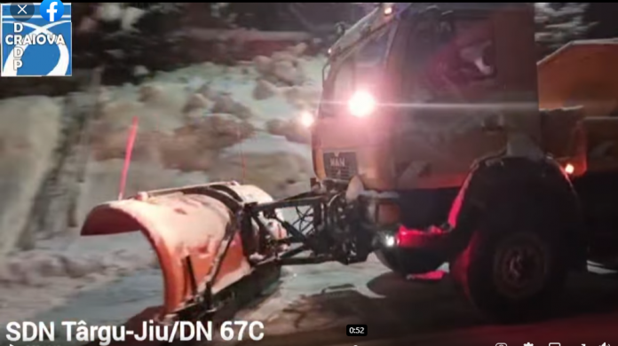 ”S-a acționat toată noaptea cu utilaje cu lamă și material antiderapant pe toate din zona montană, DN67C, DN7A, DN67D, pentru ca circulația rutieră să se desfășoare în siguranță.