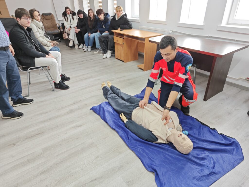 Vizita s-a încheiat cu prezența elevilor clasei a XI-a E, profil Științele Naturii, de la Colegiul Național „Tudor Vladimirescu”, coordonați de prof. Elena Gabriela Burtea-Protesoiu. Aceștia au asistat la prezentarea realizată de doctorul Traian Claudiu Constantinescu și la o demonstrație practică susținută de ing. Ionel Ianc, care a inclus prezentarea unei autosanitare, a echipamentelor din dotare și a unor procedee medicale specifice.