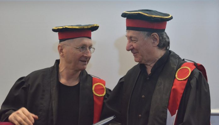 Actorii, Ion CARAMITRU şi Horaţiu MĂLĂELE, au primit supremul titlu academic DHC «Magna cum Laude» al UCB Târgu-Jiu