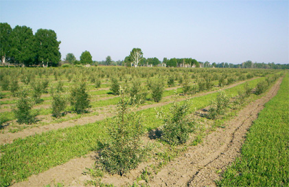 3 – Plantațiile comerciale adică cele create pentru producția de fructe se înființează cu respectarea cerințelor biologice ale plantei față de sol, apă, lumină, expoziție. De regulă se evită terenurile cu apă stagnantă și pantele cu expoziție nordică sau cele cu risc de umbrire. În rest orice teren, fertil sau nu, este pretabil pentru o plantație de cătină albă. Să nu uităm că această plantă poate stăvili alunecările de suprafață ale terenurilor agricole, caz în care plantarea începe de la baza pantei și se încheie în vârful acesteia. În plantațiile comerciale plantele pot fi conduse cu coroană globuloasă, pe trunchi înalt, caz în care se preferâ plantele cu vigoare mijlocie sau mare și fără spini deoarece la noi recoltatul se face aproape exclusiv manual. Aici schema de plantare prevede distanțe de 3,00 – 3,50 m îmtre rânduri și 2,00 – 2,50 m între plante pe rând pentru a permite deschiderea coroanelor dar și efectuarea mecanizată a lucrărilor de întreținere curate de buruieni sau recoltare. În aceste plantații se introduce o plantă masculă la 6 – 8 plante femele pentru a asigura din plin polenul necesar. La plantare se folosesc puieți mari, viguroși care să permită formarea trunchiului la aceeași înălțime la toate plantele. Trunchiul poate fi de 60 – 80 cm înălțime. Aceste plantații se pretează la recoltarea mecanizată prin scuturare sau vibrație. Plantațiile cu coroană aplatizată pot avea sau nu trunchi și sunt cele mai ușor de întreținut și exploatat și se pot realiza și din soiuri viguroase dar mai bine din cele cu vigoare medie sau redusă și cu țepi puțini sau moi pentru a facilita recoltarea manuală. Este recomandabil ca rândurile să fie orientate pe cât posibil pe direcția nord – sud pentru a asigura condiții egale de iluminare tuturor plantelor. La plantare puieții se scurtează la 20 – 40 cm pentru a provoca trunchiul sau tufa aplatizată, forme de coroană pe care ni le propunem de la început. Și în aceste plantații se introduce o plantă mascul la 6 – 8 plante femele, de preferință rânduri întregi. Este bine ca într-o parcelă să fie plantat un singur soi iar în plantație mai multe soiuri, cu precocități diferite pentru a aplatiza vârful de efort la recoltare.