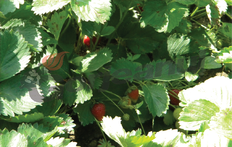 Picture 0332 – Particularități biologice. Ca plantă de cultură căpșunul s-a format în condiții de pădure, la umbră, pe sol reavăn și bogat în materii organice și ca urmare are un sistem radicular fasciculat, aproape fibros, nu prea adânc, până pe la 50 cm cu majoritatea în primii 25 cm. Primăvara devreme rădăcinile încep să crească înaintea părților aeriene și după 3 – 5 ani volumul lor se reduce, deoarece ramificațiile laterale mor. Tulpina de 10 – 15 cm este parțial îngropată în pământ, rizom scurt din care se dezvoltă rădăcinile, iar din părțile aeriene anual se produc 1 – 8 ramificații de 1,5 – 2 cm din care se dezvoltă rozete de frunze cu un mugure de rod la vârf. Căpșunul este o plantă permanent verde, sempervirens, ale cărui frunze bătrâne nu cad fiziologic, ci din cauza degerării peste iarnă, secetei etc. Din mugurii laterali se dezvoltă filamente, stolonii, de 30 – 50 cm, uneori pot ajunge la 100 cm, lungime și din mugurii de pe aceștia la contactul cu solul se emit rădăcini, iar aerian noi tulpini astfel că iau naștere noi plante. Plantele tinere se deosebesc de plantele mamă prin aceea că au frunzele de culoare verde deschis, în timp ce frunzele plantei mamă sunt verde – cenușiu. Ele se pot detașa de planta mamă numai după ce s-au înrădăcinat bine. La vârful ramificațiilor se află muguri floriferi din care apar pedunculi florali cu inflorescențe ramificate de regulă până la rangul 3 și mai rar până la rangul 4 – 5. Florile sunt formate din 5 sepale, 5 petale, 20 – 25 stamine și un număr variabil de pistile (organul femel al florii). La unele soiuri înfloritul se produce o singură dată pe an, primăvara și durează 20 – 30 de zile, altele înfloresc de două ori pe an (soiuri remontante) o dată primăvara și apoi toamna (durează cca 15 zile), iar alte soiuri au înflorire continuă care poate dura 150 – 190 de zile. Polenizarea se face cu ajutorul vântului și insectelor. Fructul – căpșuna –este bacă dezvoltată din receptaculul floral prin îngroșare și înroșire. De la înflorit până la coacere durează 25 – 30 de zile ceea ce înseamnă că de la pornirea în vegetație până la coacere trec aproximativ 40 – 45 de zile.