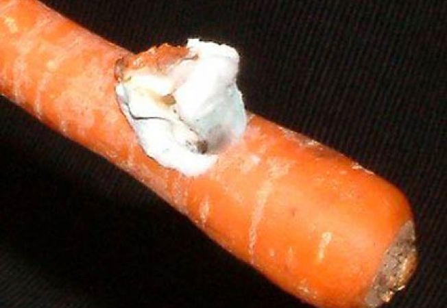 3 – Putregaiul umed (Ervinia carotovorra) atacă rădăcinile pornind din zona coletului pe care apar pete galben- brune și cu conținut zemos. Prin extindere atacul transformă întreaga rădăcină într-o masă flască, de culoare închisă. Combaterea pe lângă măsurile agrotehnice specifice presupune și tratamente cu Rovral 50 PU – 0,2 % sau Rovral 50 WP – 0,2 b%.