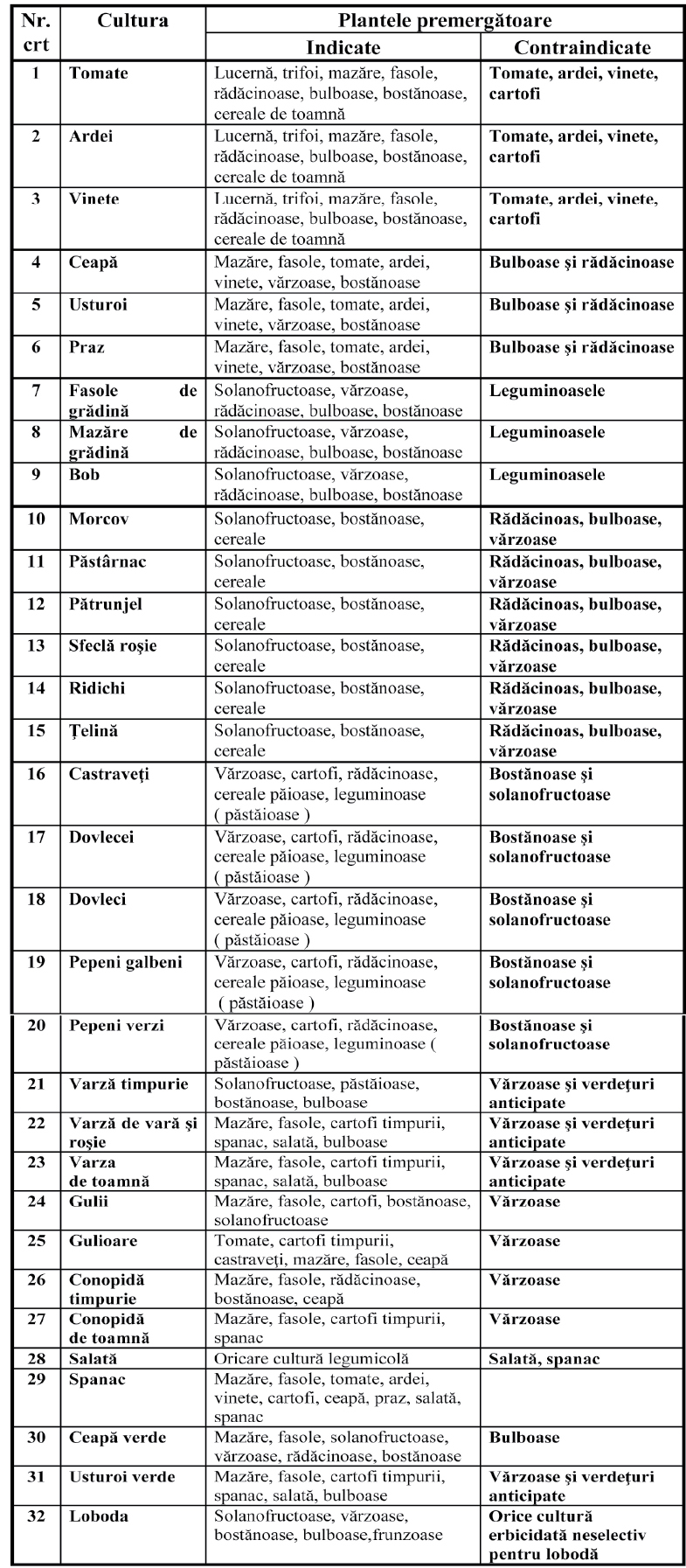 Pentru asigurarea fiecărei culturi a celor mai bune condiții agrotehnice vă prezentăm cele mai bune plante premergătoare pentru legume.