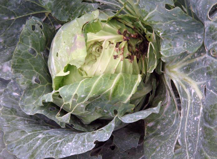5 – Fluturele alb, albilița (Pieris brasicae) are corpul negru cu perișori alb-gălbui și aripi albe cu nervuri negre. Larvele, omizile, au 3 – 3,5 cm lungime, culoare verde-gălbui cu 3 dungi longitudinale galbene, cele laterale mai late decât cea centrală. Acestea atacă rozând frunzele, dar nu și căpățânile. Între frunzele de varză își depun excrementele care favorizează dezvoltarea unor bacterii și ciuperci. Plantele atacate devin improprii pentru consum. Combaterea se face cu: Actelic 50 EC – 0,05 %, Bromex 50 EC – 0,15 %, Chinmix 5 CE – 0,03 %, Cypersan 20 EC – 0,02 %, Carbetox 37 CE 0,8 l / ha, Cyren 48 EC – 0,15 %, Dimecron 50 SCW – 0,1 %, Dackilin – 0,02 %, Decis 2,5 EC – 0,04 %, Dipel 2 XWP – 0,05 %, Dimilin 25 WP – 0,05 %, Ecalux 25 CE – 0,1 %, Fury 10 EC – 0,02 %, Fastac 10 CE RV – 0,02 %, Foray 48 B – 0,1 %, Hostation – 0,1 %, Mospilan 20 SP – 0,0125 %, Mavrik – 0,05 %, Nomolt 15 SC – 0,05 %, Nogos 50 EC – 0,1 %, Imidan 50 WP – 0,1 %, Onefon 90 – 0,2 %, Onevos 31,5 CE – 0,15 %, Polytrin 200 EC – 0,015 %, Pirimor 25 WG – 0,1 %, Runer 2 F – 0,04 %, Rimon 10 EC – 0,05 %, Sumi Alfa 2,5 CE – 0,2 l / ha, Sumithion 50 EC – 0,1 %, Thionex 35 EC – 0,2 %, Talstar – 0,035 % sau Zolone 35 EC – 0,15 %.