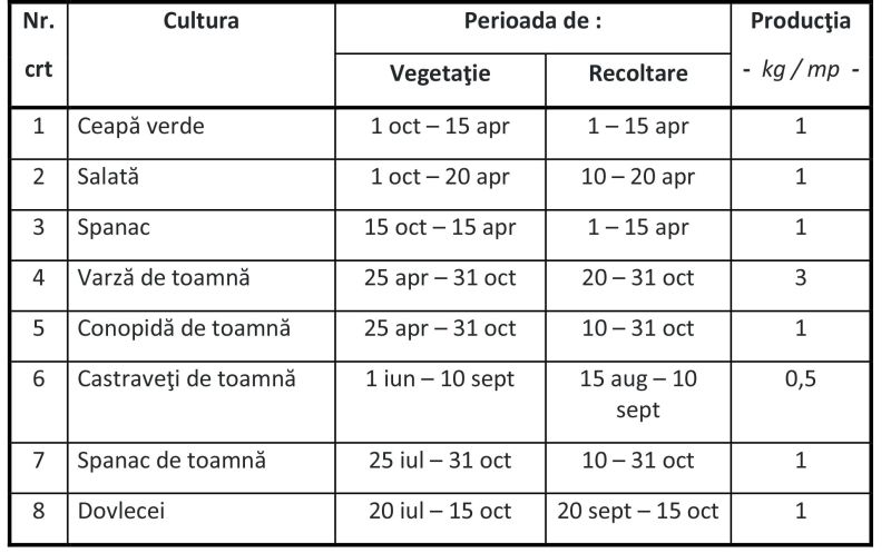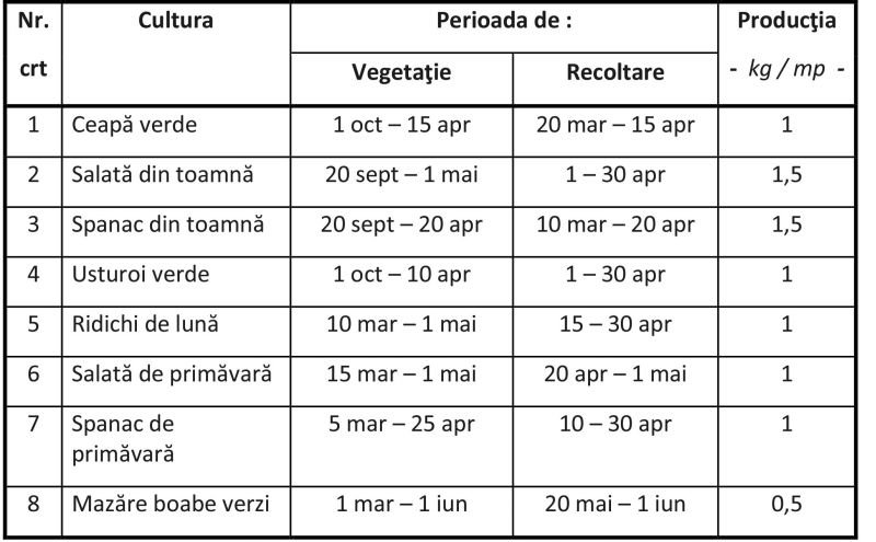 1 – La culturile anticipate înfiinţate între 1 octombrie și 1 aprilie anul următor
