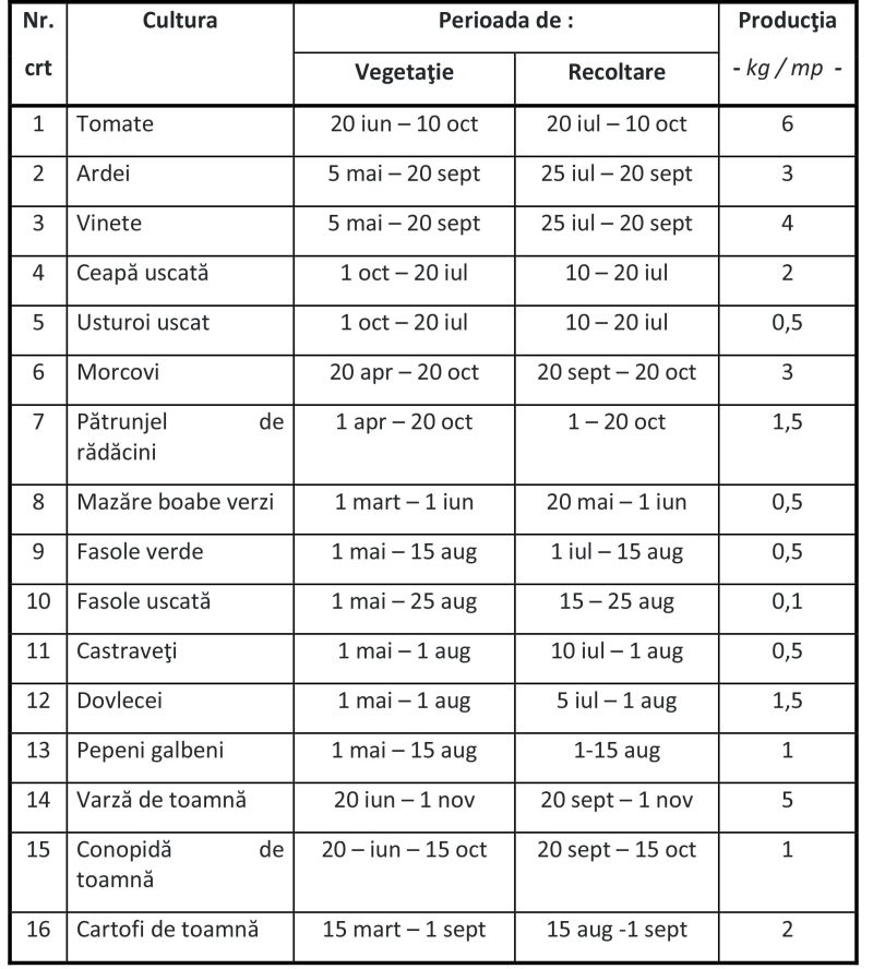 Aceste date vă sunt de folos în a stabili suprafața pe care veți cultiva legume după ce ați calculat nevoile familiei și / sau pe cele pentru comercializare.