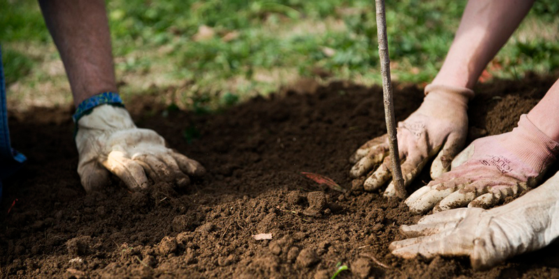 La plantare puieţii se manevrează cu grijă pentru a nu fi răniţi.