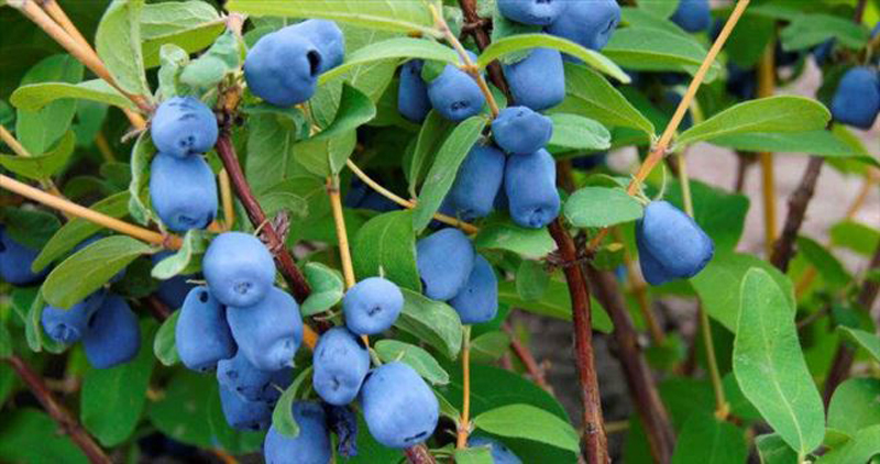 12 – Lonicera albastră, afinul siberian – este de asemenea un arbust fructifer recent introdus în cultură la noi, din Rusia, asemănător afinului și care furnizează primele fructe în primăvară, începând chiar cu luna mai, chiar și înaintea cunoscutelor cireșe de mai. Din punct de vedere botanic, această plantă este rudă bună cu mâna Maicii Domnului. Fructele, bacele – sunt bogate în vitamine, mai ales C și B, zaharuri, săruri minerale și au gust dulce, ușor acrișor, revigorant, sunt cilindric-alungite, lungi de 2,5 cm și cu diametrul de 0,8 cm, de 0,8 – 1,1 gr, colorate în diverse nuanțe de albastru. Planta este destul de productivă dând cam 5 – 7 kg fructe/plantă sau 10 to/ha. Se consumă proaspete, deshidratate sau sub formă de suc, sirop, gem, dulceață sau lichior. Au efect antispasmodic, emolient, expectorant, liniștitor psihic, diuretic, laxativ, antimicrobian, antisalmonelic, streptococic, în combaterea răcelii, febrei, durerilor în gât, inflamațiilor intestinale, ale tractului urinar sau aparatului genital, în prevenirea cancerului. Extern se acestea se folosesc în combaterea conjunctivitei, rănilor, afecțiunilor pielii. Planta nu este deloc pretențioasă la condițiile de climă și sol, nu are boli sau dăunători specifici și este foarte rezistentă la secetă și ger.