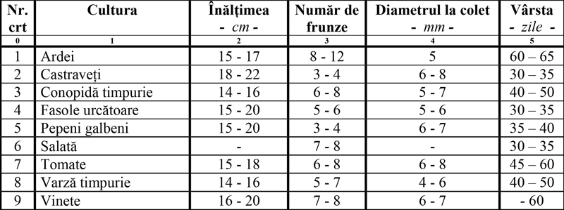 Iată și indicii de calitate a răsadurilor de legume în momentul plantării.