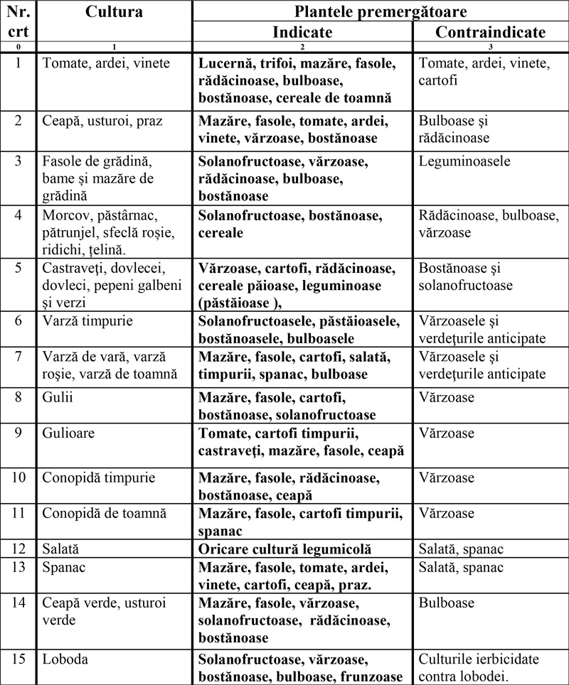 Cele mai bune plante premergătoare pentru legume sunt: