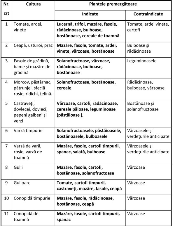 În cultura plantelor, deci și a legumelor, un factor foarte important în obținerea de recolte bogate și mai ieftine îl constituie planta premergătoare. Ea poate fi o puternică sursă de boli, buruieni sau dăunători, este cazul plantelor contraindicate, sau o sursă de condiții favorabile, este cazul premergătoarelor indicate, care pot spori volumul și calitatea recoltelor.