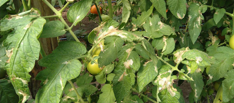 Tuta absoluta – molia minieră a tomatelor – este un dăunător extrem de periculos căci are rată mare de reproducere, rezistență naturală la foarte multe insecticide chimice de sinteză, virulență mare a atacului și pe lângă tomate, care sunt preferatele ei, mai atacă și vinete, ardeii, cartofii, inclusiv tuberculii, ba chiar și unele buruieni ca zârna, turbăciunea sau turbarea câinelui – Solanum nigrum, sau ciumăfaia, laurul sălbatic – Datura stramonium, cu alte cuvinte plante din familia botanică Solanaceae. Provine din America de Sud și a apărut în Europa în anul 2008 prin Spania, dar în anul 2009 a fost semnalată și în România, atât în culturile de tomate din câmp, cât și în cele din spațiile protejate. Se crede că a fost adusă ca ouă sau pupe lipite pe ambalajele de lemn ale produselor importate. Acum practic a cuprins toată Europa și a trecut chiar și în Asia. Binefacerile globalizării, nu? Este o specie nocturnă, ziua adulții se ascund prin tufele de plante, și atacă culturile amintite mai sus chiar de la apariția răsadurilor și până toamna târziu dacă temperatura locului unde se află este mai mare de 90 C, cam din martie până în septembrie în câmp și permanent în spațiile protejate, săpând galerii late între pielițele frunzelor, lăstarilor sau fructelor, chiar și tuberculii de cartof. A nu se confunda cu atacul musculiței miniere – Lirioryza trifoli – ale cărei galerii sunt mult mai înguste. La început prezența ei poate fi observată ca urmare a excrementelor de culoare neagră lăsate de larve, numai larvele dăunează, pe organele plantelor atacate, dar ulterior, mai ales pe frunze, se observă pete transparente largi care sunt de fapt cele două pielițe ale frunzelor al căror miez a fost mâncat. Intrând în fructe le face pe acestea improprii pentru consum, dar poate distruge complet plantele atacate.