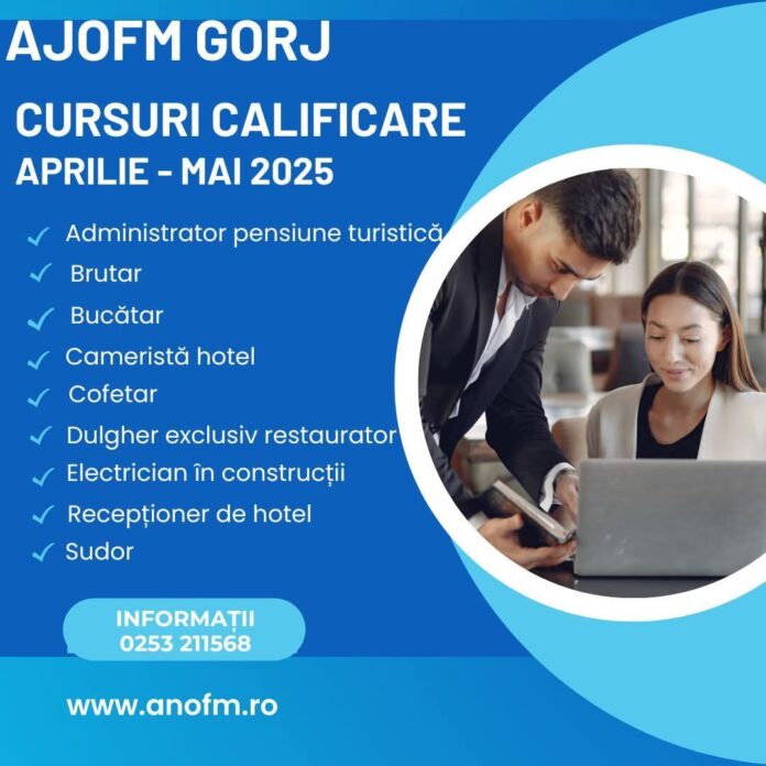 În vederea creşterii gradului de ocupare a forţei de muncă în rândul şomerilor, Agenția Județeană pentru Ocuparea Forței de Muncă (AJOFM) Gorj va organiza în perioada aprilie-mai 2025 mai multe cursuri de calificare/recalificare pentru şomeri sau persoane aflate în căutarea unui loc de muncă.
