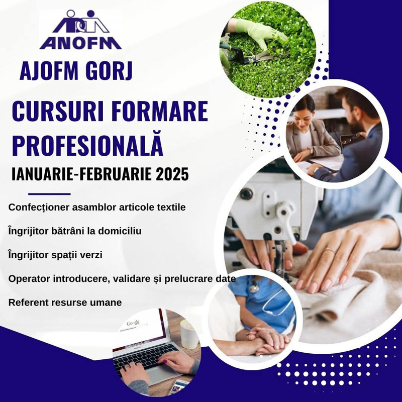 În vederea creşterii gradului de ocupare a forţei de muncă în rândul şomerilor, Agenția Județeană pentru Ocuparea Forței de Muncă (AJOFM) Gorj va organiza în perioada ianuarie-februarie 2025 cursuri de calificare/recalificare pentru şomeri sau persoane în căutarea unui loc de muncă.