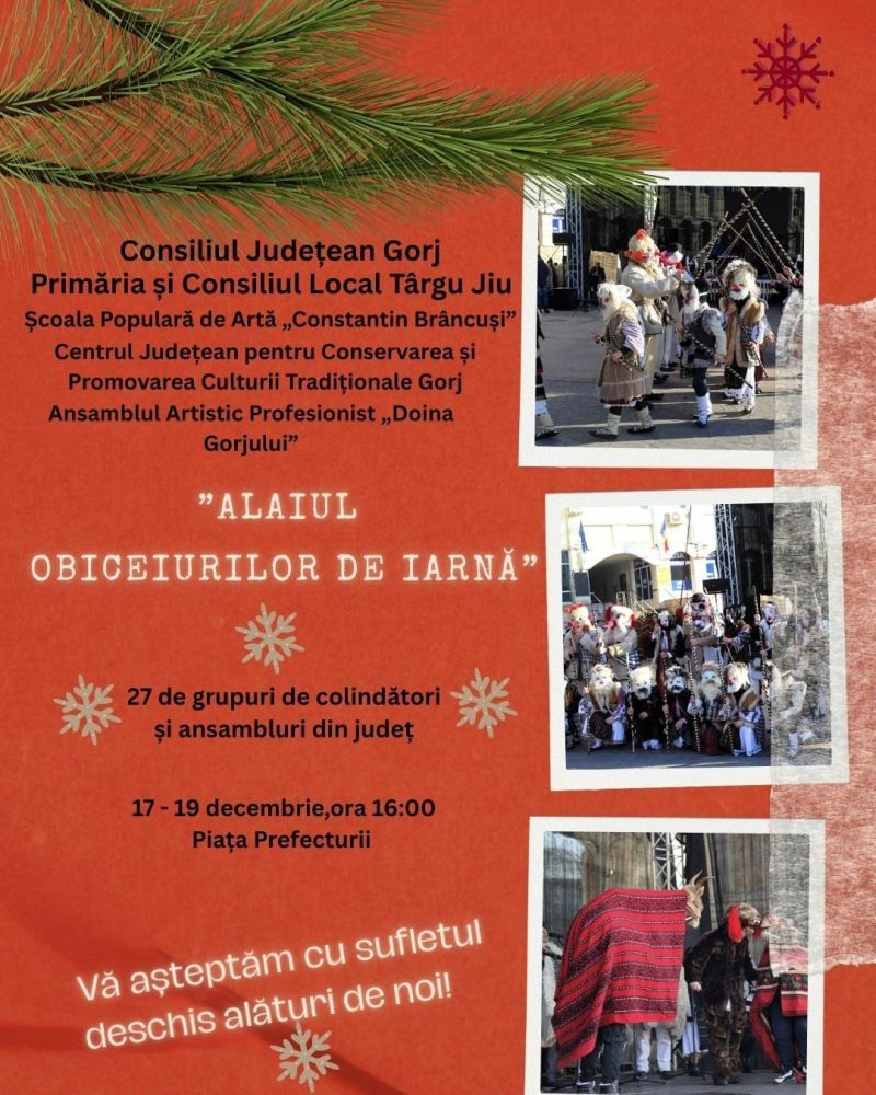 „Alaiul obiceiurilor de iarnă” se va alătura Târgului de Crăciun din centrul municipiului Târgu Jiu, astfel, propunându-și să readucă în actualitate spectaculoasele tradiții gorjenești.