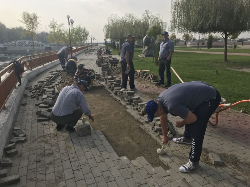 Relații tot mai tensionate între primarul Marcel Romanescu și viceprimarul Adrian Tudor, după ce, ieri dimineață, s-a aflat că o alee amenajată cu pavele în parcul de pe Insuliță a fost distrusă de utilajele, care au adus acolo lucrările realizate la ultima tabără de sculptură Brâncușiana. Macaraua și camionul, care au fost folosite pentru transportul și amplasarea sculpturilor, au făcut ca aleea să fie aproape complet distrusă, lucru care s-a întâmplat însă și în anii anteriori. Muncitorii de la Edilitara, firmă din cadrul municipalității, sunt responsabili cu lucrurile respective, tot ei trecând, ieri, și la repunerea pavelelor la locul lor în nisip pentru ca aleea să revină la starea normală cât mai repede.
