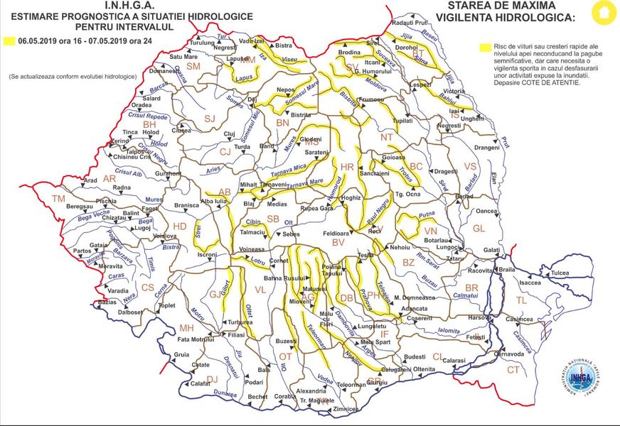 Este cod galben de inundații pe râuri din 27 de județe, între care și Gorj. Hidrologii anunță că vor fi scurgeri importante pe versanți, torenți și pâraie, viituri rapide pe râurile mici cu posibile efecte de inundații locale și creșteri de debite pe râuri. Atenționarea este valabilă de luni, de la ora 16.00, până marți la miezul nopții.