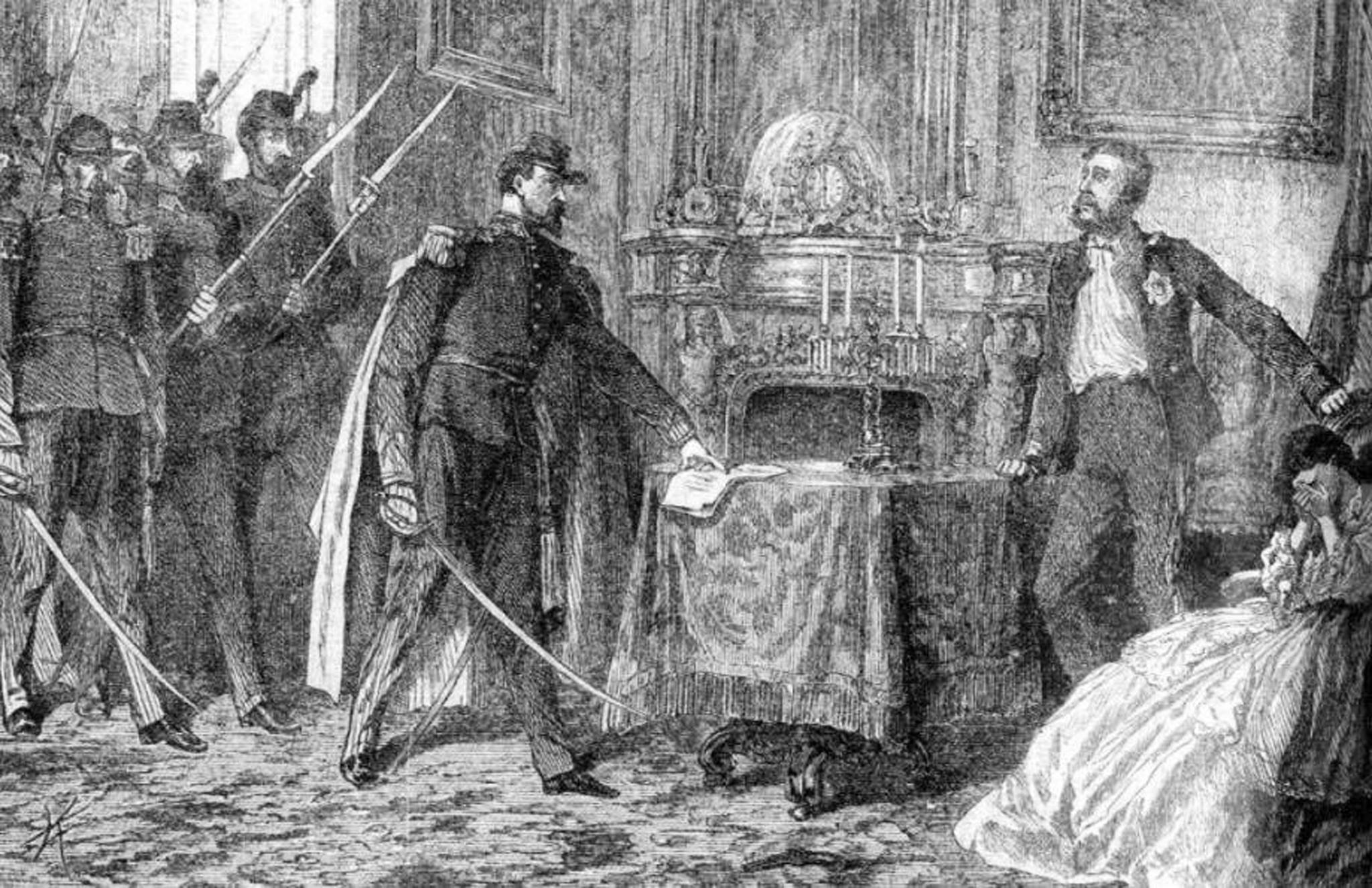 Din nefericire, ilustrul Domn s-a înconjurat şi de o camarilă care nu i-a făcut cinste. „Faptele lui cele mari – cum afirma Mihail Kogălniceanu (1817-1891) la înmormântarea sa – i-au adus căderea”. Drept urmare, clasa politică, înlăturată de la putere, nu s-a lăsat mai prejos, ci a format ceea ce în epocă a rămas drept „monstruoasa coaliţie”, când adversarii politici şi-au dat mâinile şi s-au aliat pentru un scop comun: înlăturarea lui Cuza. În dimineaţa nopţii de 10/22-11/23 februarie 1866, complotiştii au intrat în locuinţa sa din Palatul Domnesc din Bucureşti şi l-au forţat să abdice. Textul a fost deja pregătit de ei şi trebuia să fie doar semnat de acesta: „Noi, Alexandru Ioan I, conform dorinţei naţiunii întregi şi angajamentului ce am luat la suirea mea pe Tron, depun astăzi 11 Fevruarie 1866, cârma guvernului în mâna unei Locotenenţe Domneşti şi a Ministerului ales de popor”. După aceasta, Cuza a fost urcat într-o trăsură şi trimis la locuinţa lui Costache Ciocârlan, iar a doua zi a fost mutat la Palatul Cotroceni, de unde seara a fost obligat să părăsească ţara.