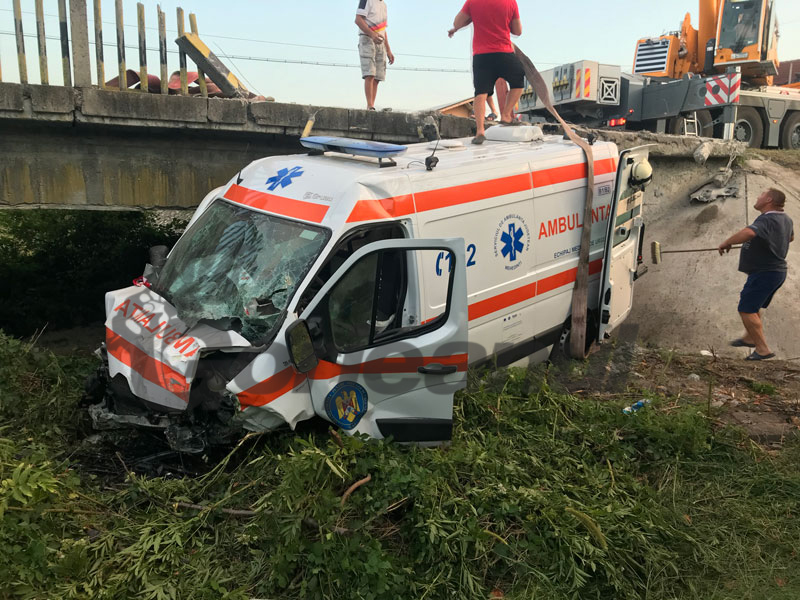 ce aparține SAJ Mehedinți, care transporta un pacient confirmat pozitiv cu virusul COVID-19. Ambulanța a părăsit partea carosabilă și a căzut de pe un pod. La fața locului s-au deplasat două autospeciale pentru descarcerare din cadrul Detașamentului de Pompieri Târgu-Jiu, precum și patru ambulanțe SAJ. În urma impactului au rezultat patru victime, conștiente și neîncarcerate, fiind vorba despre trei membri ai echipajului ce încadrau ambulanța și pacientul. Toate cele patru victime prezintă leziuni. Echipajele de intervenție sosite la fața locului le-au acordat primul ajutor calificat victimelor, ulterior acestea fiind transportate la UPU Târgu-Jiu”, a transmis ISU Gorj. La locul accidentului a venit și un director al Ambulanței Mehedinți, care a confirmat că pacientul din salvarea avariată era infectat cu noul coronavirus și era transportat de la Orșova spre Târgu-Jiu. Din cauza stării pacientului respectiv oamenii au păstrat distanța de salvarea distrusă, nedorind să aibă de-a face cu temutul COVID-19. Inițial, aceștia nu au știut, iar când au încercat să ajungă la echipajul medical cineva din ambulanță le-a transmis oamenilor să stea la distanță. La locul accidentului s-au format cozi kilometrice, șoseaua fiind una intens circulată. Traficul a fost oprit temporar pentru cercetările făcute de polițiști la fața locului, dar și pentru ca o macara să ridice ambulanța de sub pod și să o readucă la nivelul șoselei pentru a putea fi transportată cu o platformă la un service auto. Șoferul considerat responsabil pentru cele