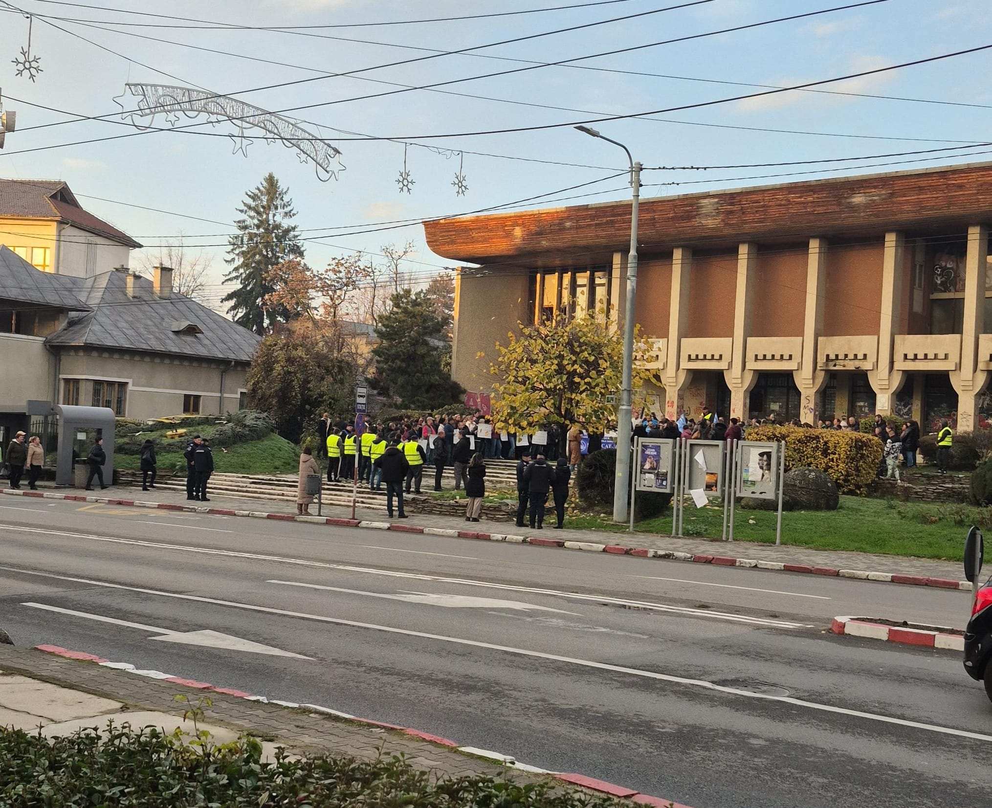 O parte a salariaților Minprest protestează acum în fața Casei de Cultură din Târgu Jiu. Protestele sunt organizate de Sindicatul Liber Alfa, condus de Cosmin Bivolaru. Oamenii au ieșit în stradă protestând împotriva concedierilor care urmează să fie făcute la Minprest, societate  al cărei acționar majoritar este CE Oltenia.