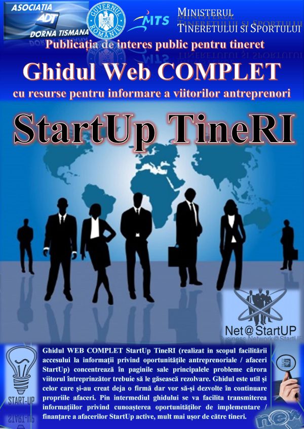 crearea și dezvoltarea platformei Business Net@StartUP, publicația de interes public pentru tineret – Ghidul web COMPLET StartUp TineRI cu resurse pentru informare a viitorilor tineri antreprenori, toate acestea își propun o abordare integrată inexistentă în acest moment pentru grupul țintă propus NEETs la nivelul comunităților țintă și privind următoarele: importanta participării și implicării active a întregului grup țintă NEETs, oferindu-le servicii de informare / conștientizare, distribuire media & internet/social media cu privire la oportunitățile antreprenoriale și de implementare/finanțare a afacerilor StartUP; implicarea activă tuturor factorilor interesați de mediul antreprenorial facilitând transmiterea informațiilor privind cunoașterea oportunităților antreprenoriale de implementare/finanțare a afacerilor active, mult mai ușor de către tineri, atrăgându-i pe aceștia în afaceri/proiecte; oferirea unor servicii suport StartUp concrete de afaceri (directe și online) prin – capacitare, recrutare StartUp care se concentrează pe principalele probleme cărora viitorul tânăr antreprenor trebuie să le găsească rezolvare, informare StartUp – punând un accent deosebit pe aspectele practice concrete de afaceri, consiliere StartUp – a tinerilor care și-au creat deja o firmă, dar vor să-și dezvolte în continuare propriile afaceri StartUp. Proiectul de tineret ”Îndrăznește să reușești StartUp TineRI” este implementat de către Asociația „Dorna Tismana” și co/finanțat de Ministerul Tineretului și Sportului.