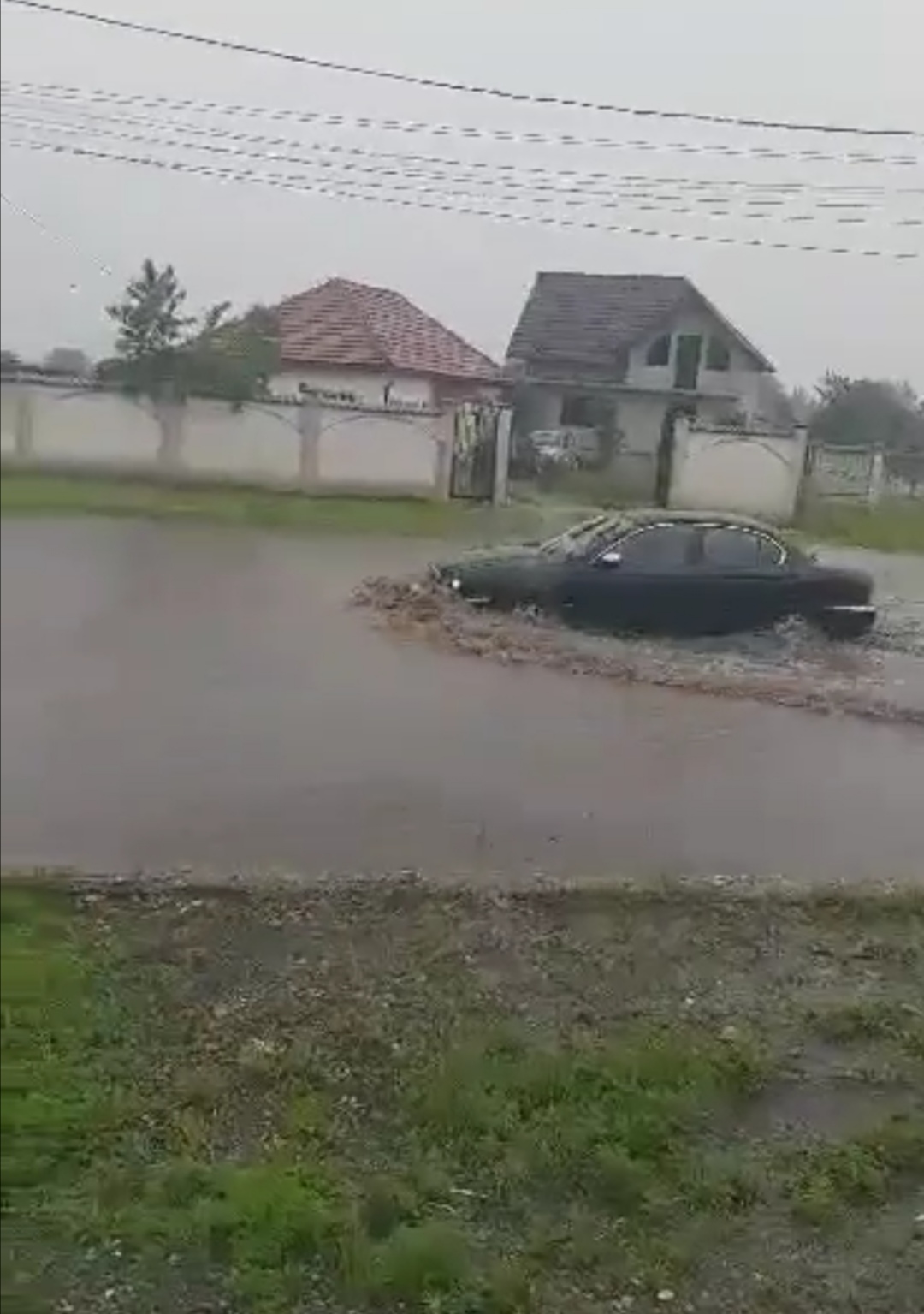 Precipitațiile au format un adevărat lac pe carosabil. S-a întâmplat, miercuri, la Urdari unde pe o porțiune din artera rutieră, intens utilizată de conducătorii auto, apa ajungea și la o jumătate de metru.