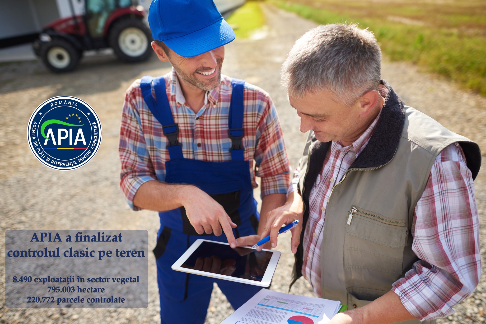 Agenția de Plăți și Intervenție pentru Agricultură (APIA) informează opinia publică că a finalizat controlul clasic pe teren aferent Campaniei 2024. Astfel, la nivel național au fost verificați toți fermierii selectați în eșantionul de control clasic, respectiv un număr de 8.490 exploatații în sector vegetal, cu o suprafață de 795.003 hectare și un total de 220.772 parcele controlate la fața locului. Inspectorii APIA au lucrat chiar și în zilele de weekend pentru a finaliza cât mai repede această acțiune de control ce reprezintă o cerință obligatorie impusă de legislația comunitară și o etapă premergătoare efectuării plăților aferente Campaniei 2024.