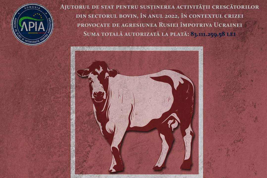 Agenția de Plăți şi Intervenție pentru Agricultură (APIA) efectuează plata ajutorului de stat pentru susținerea activității crescătorilor din sectorul bovin, în anul 2022, în contextul crizei provocate de agresiunea Rusiei împotriva Ucrainei.